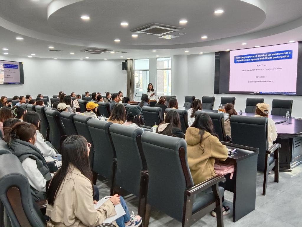 郭玉霞教授在本次报告中为我们讲解的是一个光滑有界区域上的带有线性扰动Hamilton系统,并证明这个系统的解具有非退化性。此次报告过程中,师生与郭教授积极互动,在提问环节师生踊跃提问,积极进行经验交流。师生们提出问题和疑惑,郭玉霞教授细致回答。最后,沈洁院长为本次会议进行了总结,此次报告加强了我院的学术交流,进一步营造了良好的对外交流与学习氛围。