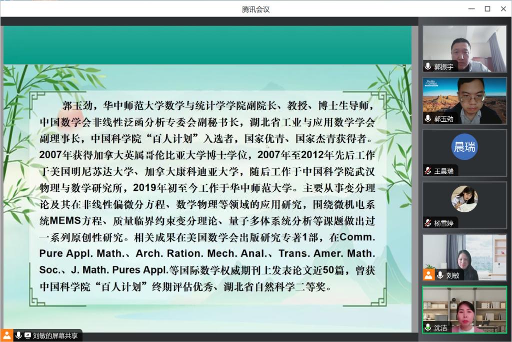 师生的学术交流,活跃学术氛围,来自华中师范大学的郭玉劲教授于2024年4月19日上午通过腾讯会议为大家做了题为“限制在非谐波阱中的吸引玻色气体的基态”的学术报告。报告由Manbetx手机版